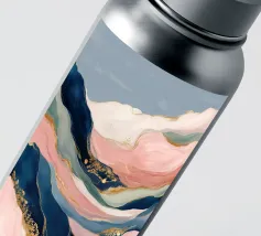 Een betoverend abstract kunstwerk met wervelende, levendige tinten blauw, groen en goud. De ingewikkelde lijnen en patronen roepen een gevoel op van kosmische diepte en etherische schoonheid. Dit stuk is perfect om een vleugje elegantie en verfijning toe te voegen aan elke ruimte.