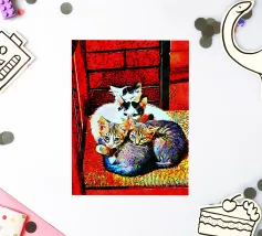"Illustratie "Drie katjes De schattigheid van drie kleine katjes in één ontwerp! Dit ontwerp heeft drie schattige en schattige kittens, perfect voor kattenliefhebbers en mensen die op zoek zijn naar een lief tintje in hun leven.