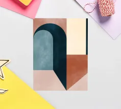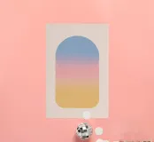 Deze minimalistische poster toont een zacht vervagend kleurverloop in de vorm van een gestileerde boog. In blauw, roos en okergeel straalt het motief warmte, rust en moderne elegantie uit. De vloeiende vorm doet denken aan ramen, poorten of horizonten - ideaal voor rustige kamers, moderne woonruimtes of Scandinavische interieurs met een vleugje kleur.