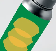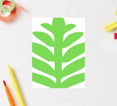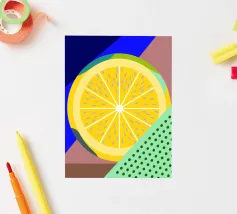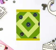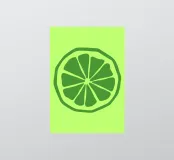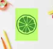 Een gestileerde groene limoen met krachtige, strakke lijnen steekt af tegen een lichtgroene achtergrond. Het eenvoudige ontwerp benadrukt de partjes en schil van de limoen.