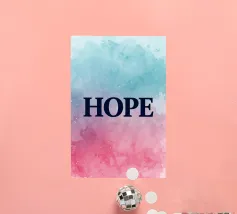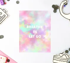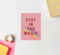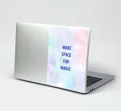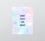 "Maak ruimte voor magie" in blauwe letters op een pastelkleurige aquarelachtergrond met een kleurverloop van lichtblauw naar roze. Een dromerig, creatief ontwerp vol lichtheid, inspiratie en zachte zelfreflectie.