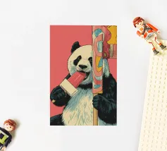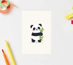 Voor echte pandaliefhebbers is de illustratie "Panda eet bamboe" de perfecte keuze! Dit ontwerp toont een schattige en expressieve panda die van zijn maaltijd geniet.
