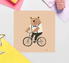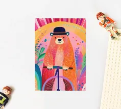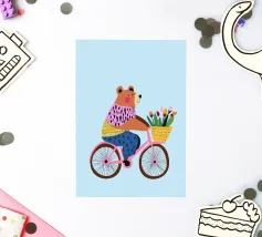 "Panda Playing Bike and Balloon" is a colorful and adorable illustration featuring a panda having fun riding a bike while carrying a balloon.