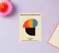 Moderne, op Bauhaus geïnspireerde poster in krachtige kleuren en heldere vormen. Combineert strenge geometrie met zachte rondingen - een tijdloos designstatement voor woon- en werkruimtes.