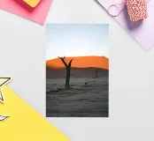 Elk duin, gevormd door de fluisterende wind, vormt gladde, gebogen richels die scherpe, elegante schaduwen werpen. Het oppervlak glinstert van de hitte en fijne zandkorrels dansen lichtjes over de top, gedragen door de bries. In deze stille, dorre wereld staan de duinen als steeds veranderende sculpturen - tijdloos, majestueus en mysterieus.