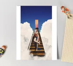Het kunstwerk met de titel Escape belichaamt de essentie van surrealisme en nodigt toeschouwers uit in een droomwereld waar de werkelijkheid wordt vervormd en emoties worden versterkt. Dit werk weerspiegelt vaak thema's van bevrijding en transcendentie en verbeeldt de strijd tussen opsluiting en het verlangen naar vrijheid.