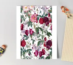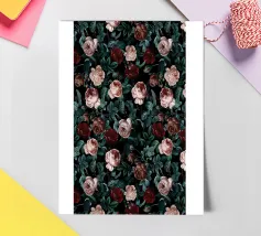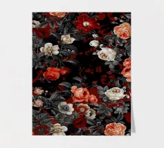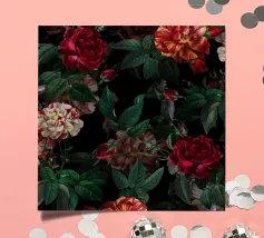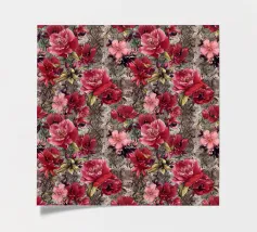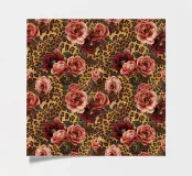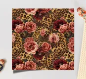 Een fel en vrouwelijk patroon dat klassieke luipaardprintvlekken combineert met vintage rozen in koraalroze, bordeauxrood en paars. Dit gedurfde ontwerp combineert wilde dierenprint met romantische bloemen voor een edgy maar elegante esthetiek. Perfect voor dierenprintliefhebbers, liefhebbers van gedurfde patronen, fans van gemengde prints en iedereen die graag felle luipaardvlekken combineert met zachte vintage rozen voor een unieke, opvallende stijl.