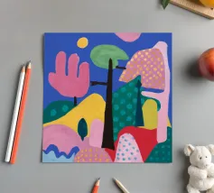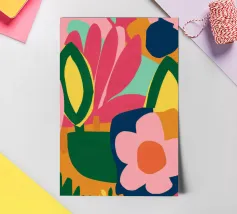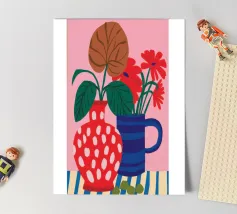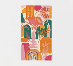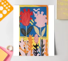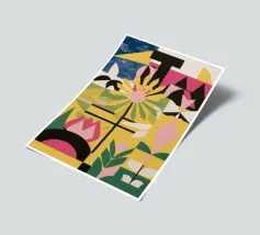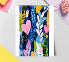 Een vrolijk en hartverwarmend patchwork van gestileerde planten, levendige patronen en een groot, liefdevol hart. Dit eclectische kunstwerk is een vreugdevolle viering van liefde, groei en handgemaakte schoonheid.