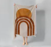Dit kunstwerk is geïnspireerd door de harmonie van de natuur en combineert organische vormen en aardse kleuren om een gevoel van rust en verbondenheid te creëren. De cirkel en boog staan voor evenwicht en groei, waardoor het een ideaal stuk is voor een sereen en stijlvol huis.