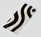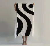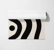 Een harmonieus golfpatroon in zwart op een crèmekleurige achtergrond die de minimalistische boho-stijl perfect weergeeft. Dit ontwerp wordt gekenmerkt door zachte, vloeiende lijnen die rust en evenwicht uitstralen. Als muurschildering, kussen, mok of hoesje voor je mobiele telefoon - dit abstracte kunstwerk brengt elegantie en moderniteit in elke kamer. Ideaal voor designliefhebbers die op zoek zijn naar stijlvolle accenten en een geweldig cadeau voor creatieve geesten.
