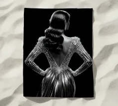 Elegant meisje in art-decostijl Deze afbeelding toont een verbluffend flapper meisje dat elegant poseert te midden van weelderige metalen accenten, weelderig meubilair en sierlijk decor, een mix van futuristische en Art Deco stijlen met organische rondingen en dromerig surrealisme.