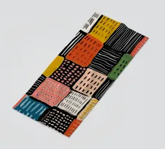 Een levendige abstracte compositie die lijkt op een lappendeken, met verschillende kleurblokken, geometrische patronen en texturen die een levendig, tastbaar ontwerp creëren.