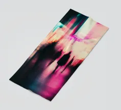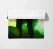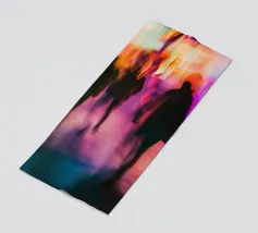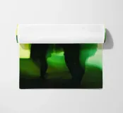 In een explosie van groen en geel gaan twee silhouetten op in het lichtgevende stadslandschap. Een abstracte, elektrische visie die de intensiteit van nachtelijke beweging, tussen werkelijkheid en illusie, vastlegt. Ideaal voor wie op zoek is naar een levendig, meeslepend werk.