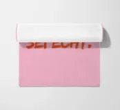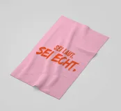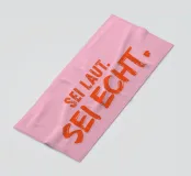 Moed voor authenticiteit! "Wees luid. Be real." in oranje op een roze achtergrond herinnert je eraan jezelf te zijn en geen compromissen te sluiten.