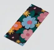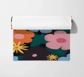 A simple and cheerful pattern of stylized daisies in various colors against a dark background creates a classic, beautiful, and timeless floral design.