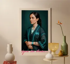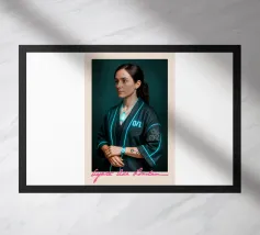 Een visionair portret van Ada Lovelace - de eerste vrouwelijke programmeur in de geschiedenis, geherinterpreteerd in een futuristische cyberpunkstijl. Tatoeages, technische gadgets en de binaire code "0/1" combineren historische genialiteit met moderne esthetiek. Voor alle fans van vrouwelijke empowerment, IT-cultuur en digitale kunst. Perfect als poster voor studeerkamers, galerieën of moderne leerruimtes.