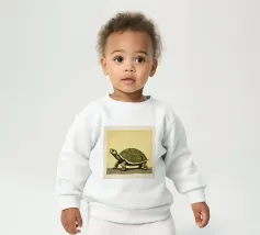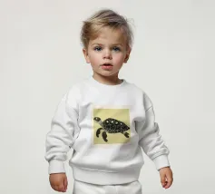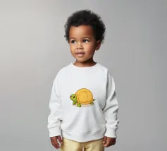 Onze baby sweatshirts bestaan uit 85% biologisch katoen en 15% gerecycled polyester.