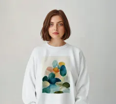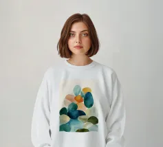 Dit minimalistische aquarelpatroon bestaat uit zacht verspreide organische kiezelvormen in warme beige en gedempte olijfgroene tinten. De handgeschilderde textuur en luchtige witte achtergrond creëren een rustige, moderne esthetiek geïnspireerd door de natuur en Scandinavische eenvoud. Dit ontwerp is perfect voor eigentijdse interieurs en voegt subtiel karakter toe zonder visuele rommel. Ideaal voor woonkamers, slaapkamers, kantoren en stijlvolle galeriewanden die een evenwichtige, natuurlijke uitstraling nastreven.