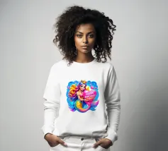Deze schattige eenhoorn, oplichtend in neonheldere regenboogkleuren, houdt een sterrenhart vast en zweeft op een pluizige wolk van grillig geluk. Met zijn grote, sprankelende ogen en manen die schitteren in een spectrum van felle kleuren, voelt dit ontwerp aan als een magische ontsnapping naar een land waar dromen uitkomen. Het is perfect om een uitbarsting van speelse energie toe te voegen aan elke ruimte of elk item dat het decoreert. Of je nu jong bent of jong van hart, deze vrolijke eenhoorn is er om je eraan te herinneren je innerlijke magie te omarmen en altijd met liefde te leiden.