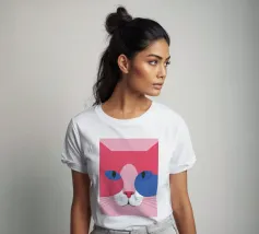 Artistieke afbeelding van een kat in abstracte stijl met kleurrijke oppervlakken - speels, modern en vol expressiviteit. Kattenmotief in geometrische kleurbloktechniek Harmonieuze, warme en levendige kleuren Eigentijdse interpretatie van een dierenklassieker Ideaal voor liefhebbers van moderne kunststijlen Expressief, creatief en veelzijdig