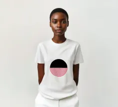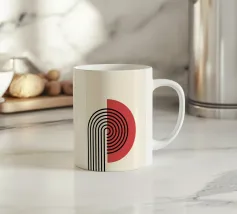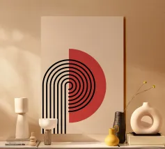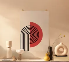 Stap in een fusie van retro en modernistische esthetiek met deze opvallende abstracte kunstprint. Het ontwerp bestaat uit een gedurfde rode halve cirkel afgewisseld met een complexe opstelling van zwarte concentrische bogen en parallelle lijnen, waardoor een visueel aantrekkelijke en dynamische compositie ontstaat die doet denken aan grafisch design uit de jaren 70. Dit stuk belichaamt zowel een speelse retro charme als een strakke, eigentijdse uitstraling. Geproduceerd met een indrukwekkende resolutie van 7000 x 5000 pixels en 300 dpi, zorgt deze hoogwaardige digitale kunst ervoor dat elke scherpe lijn en levendige tint wordt weergegeven met uitzonderlijke precisie, waardoor het een aantrekkelijke aanvulling is op