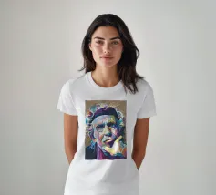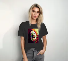 Een levendig en geometrisch portret in WPAP-stijl van Sinead O'Connor, met gedurfde, hoekige vormen en een opvallende reeks heldere, contrasterende kleuren. Het kunstwerk legt haar iconische kenmerken vast, zoals haar geschoren hoofd, doordringende ogen en sterke gezichtsuitdrukking, door gebruik te maken van scherpe, gefragmenteerde kleurblokken. De compositie benadrukt diepte en emotie met behoud van de kenmerkende pop-art kubistische esthetiek van WPAP, waardoor een visueel dynamisch en modern eerbetoon aan de legendarische zangeres ontstaat.