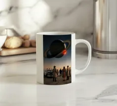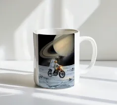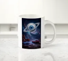 Dit filmische sci-fi kunstwerk toont een retro muscle car die door een buitenaardse woestijn scheurt onder een adembenemend uitzicht op Saturnus en zijn gloeiende ringen. Grillige rotsformaties rijzen op rond het stoffige terrein, terwijl een verre maan en een met sterren gevulde hemel een meeslepende kosmische sfeer creëren. De dramatische verlichting, diepe schaduwen en het gevoel van avontuur roepen de sfeer op van een klassieke sciencefiction-roadtrip. Perfect voor fans van ruimtekunst, futuristische landschappen, retro-esthetiek en gedurfde, fantasierijke wanddecoratie.