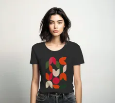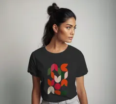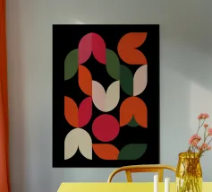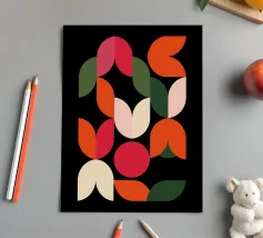 Abstract kunstwerk, waar levendige bloemvormen in rijke rood-, groen- en beigessoorten botsen met een kosmische energie. Perfect om een gedurfde, moderne touch aan je huis of garderobe te geven. Dit unieke ontwerp schittert op canvas, posters, stickers en kleding. Verhoog je ruimte met een stuk dat de schoonheid van de natuur combineert met sterreninspiratie.