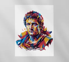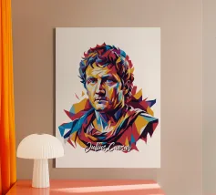 Eer de legendarische figuur van Julius Caesar met dit levendige Pop Art-ontwerp van WPAP. Met behulp van gedurfde geometrische vormen en een opvallend kleurenpalet herinterpreteert dit kunstwerk de iconische Romeinse leider in een moderne, abstracte stijl. De WPAP-techniek (Wedha's Pop Art Portrait) legt Caesars militaire genie en politieke invloed vast en symboliseert zijn centrale rol in de transformatie van de Romeinse Republiek in het Romeinse Rijk. Dit ontwerp is perfect voor geschiedenisliefhebbers, kunstliefhebbers en bewonderaars van de klassieke oudheid en vormt een uniek eerbetoon aan een van de meest invloedrijke leiders uit de geschiedenis.