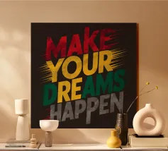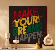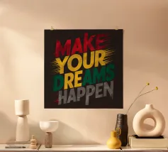 Dit gedurfde en kleurrijke typografische werk is een krachtige herinnering om je dromen na te jagen en ze waar te maken. Het energieke ontwerp en de levendige kleuren geven de opwinding en vastberadenheid weer die nodig zijn om je doelen te bereiken. Hang het in je slaapkamer, kantoor of ergens anders waar je een dosis motivatie nodig hebt.