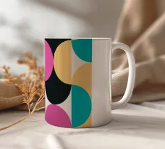 Een gedurfd en speels geometrisch abstract ontwerp met een mix van cirkels, vierkanten en gebogen vormen in een levendig retro-geïnspireerd palet. De evenwichtige compositie en warme tinten maken dit een stijlvolle toevoeging aan moderne interieurs, mid-century decor en kleurrijke galeriemuren. Perfect voor liefhebbers van abstracte patronen en tijdloze geometrische esthetiek. Ontworpen door showmemars