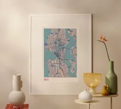 Voel de levendige energie van Rio de Janeiro in dit expressieve kaartkunstwerk. Het opvallende kleurenschema in combinatie met strakke lijnen brengt de iconische kusten, straten en waterpartijen van deze fascinerende metropool op een moderne manier naar voren. Als eerbetoon aan Brazilië of als decoratief hoogtepunt combineert dit ontwerp stedelijke flair met artistieke elegantie. Perfect voor liefhebbers van Rio en hedendaagse muurkunst.