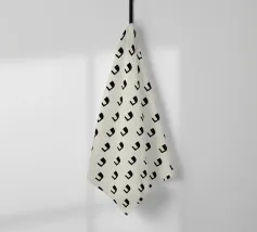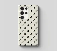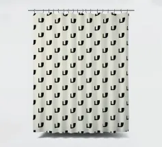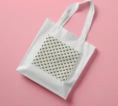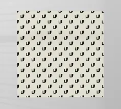 Een repeterend patroon met zwarte geometrische vormen op een lichtgrijze achtergrond creëert een visueel boeiend en ritmisch ontwerp. De vormen zijn gelijkmatig verdeeld, wat bijdraagt aan een gevoel van orde en evenwicht.