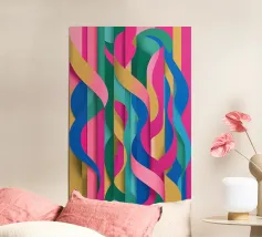 Een gedurfd abstract patroon met een vleugje dynamische energie dat beweging en vloeibaarheid symboliseert. Heldere kleuren die thema's als water, leven en beweging oproepen. Een innovatieve fusie van traditie en moderniteit voor eigentijdse, minimalistische interieurs. Een unieke visuele taal die culturele grenzen overstijgt.