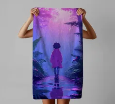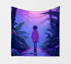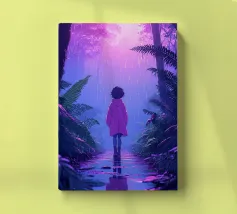Een meisje in de jungle in de regen Lofi Art