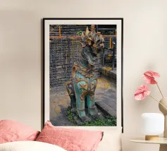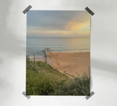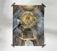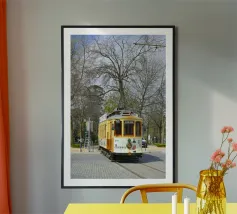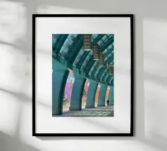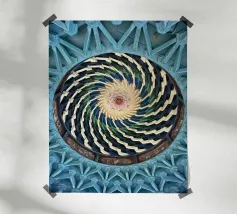 Dit kunstwerk is een opvallend tegelpatroon uit Matosinhos, Portugal, waar geometrische vormen en retrokleuren in perfecte harmonie samenkomen. Het abstracte ontwerp, met oker-, lavendel-, olijf- en crèmetinten, weerspiegelt een moderne esthetiek uit het midden van de eeuw en draagt tegelijkertijd het culturele erfgoed van de traditionele Portugese azulejos in zich.