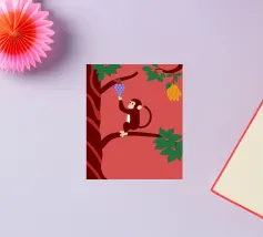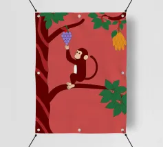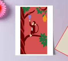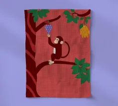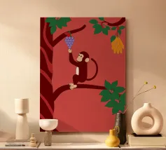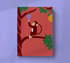 "Aap en druiven" is een geïllustreerde bewerking van het klassieke verhaal met een modern artistiek tintje.