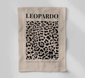 Een textuur met dierenmotief, met een opvallend luipaardvlekkenpatroon in diep antraciet en zacht perzik, ideaal voor een eigentijdse galeriewand in safaristijl.