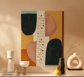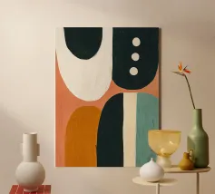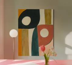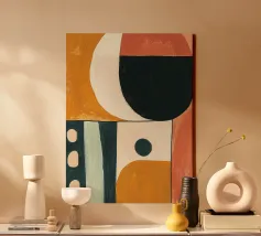 Breng kleur en een moderne uitstraling in uw woning met deze abstracte canvas wanddecoratie. De combinatie van vormen en kleuren maakt het een perfecte aanvulling voor elke ruimte, zoals de woonkamer of slaapkamer.