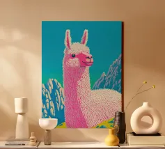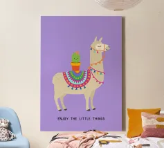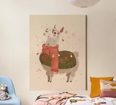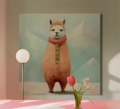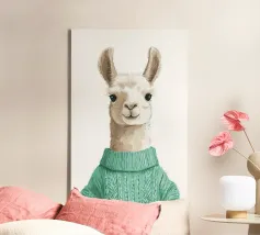 Vrolijke lama met kleurrijk gestreepte sjaal canvas