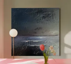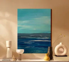 This abstract seascape captures the movement, depth and atmosphere of the ocean in a modern, timeless form. Flowing structures and nuanced colours are reminiscent of water, wind and light in transition and convey tranquillity, vastness, longing and freedom. The minimalist seascape creates a meditative mood and blends harmoniously into modern living spaces, Scandinavian interiors or minimalist furnishings. Ideal for anyone who loves abstract art, maritime motifs and timeless wall art.