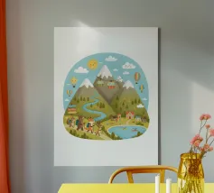 Poster voor kinderen "Het avontuur in de bergen" – Decoratie Dieren Wandelen