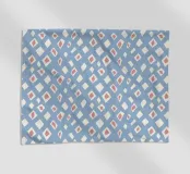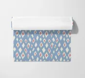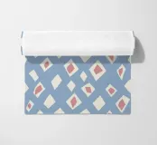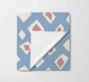 Een repeterend patroon met ruitvormen in zachtroze en wit tegen een lichtblauwe achtergrond, waardoor een geometrisch ontwerp ontstaat. De ordening van de vormen geeft een gevoel van ritme en harmonie.