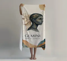 Dit ontwerp vertegenwoordigt het sterrenbeeld Tweelingen, gesymboliseerd door twee tweelingen in balans en harmonie. Met een cirkelvormige compositie speelt de afbeelding met geometrische elementen en gestileerde stippen die de dualiteit en veelzijdigheid van dit sterrenbeeld oproepen. De lijnen en centrale details zijn in balans en suggereren de verbinding tussen de twee tweelingpersoonlijkheden, terwijl de plaatsing van de stippen rond de cirkel het idee van beweging en voortdurende verandering benadrukt, typische eigenschappen van Tweelingen. Het minimalistische ontwerp met zwart-wit contrast maakt het elegant en gemakkelijk aan te passen aan verschillende inrichtingsstijlen.