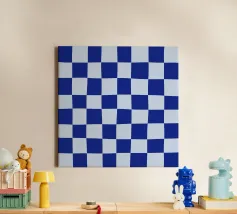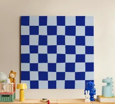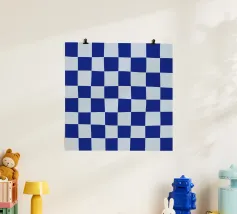 Voeg cool raffinement toe met deze retro blauwe dambord muurkunst. De handgetekende groovy ruitjes creëren een speels maar verfijnd patroon dat vintage charme uitstraalt met een moderne twist. Dit levendige ontwerp is ideaal voor eclectische, retro-geïnspireerde interieurs en is zowel rustgevend als opvallend.