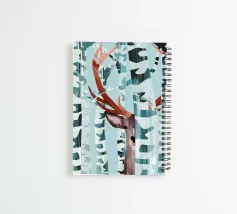 Kiekeboe! Een winters landschap met berkenbomen en een hert dat verstoppertje speelt in het bos.