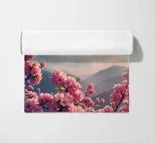 Een adembenemend uitzicht op de majestueuze berg Fuji die oprijst in de heldere lentehemel. Op de voorgrond dansen tere kersenbloesems (sakura) in de wind, waardoor de scène een poëtische lichtheid krijgt. De combinatie van de kracht van de natuur en de schoonheid van de bloesem symboliseert vergankelijkheid, harmonie en de diepe band tussen de Japanse cultuur en de natuur. Deze afbeelding vangt perfect de magie van het kersenbloesemseizoen - ideaal voor muurkunst, kalenders of reisagenda's. Tip: Perfect voor iedereen die droomt van reislust of een stukje Japanse rust en esthetiek in huis wil halen.