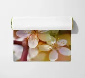 Delicate spring blossoms on a branch bathed in warm light. Soft focus and natural colours emphasise the lightness and freshness of the scene.