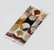 A balanced composition with shells and organic shapes in warm earthy tones. The work shows quiet harmony through color and form.