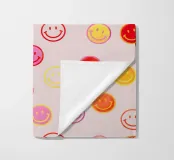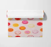Smiling face kleurrijk patroon is een eenvoudig maar opvallend helder patroon in de kleuren roze, oranje, geel en rood. Het bevat veel lachende gezichten die je in een goed humeur brengen. Vrolijk en optimistisch patroon geïnspireerd door retro 70's stijl door showmemars